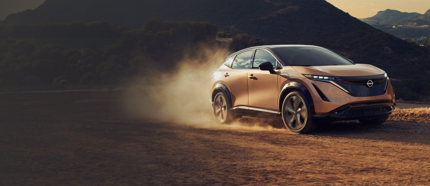 *MSRP: Starting price represents the manufacturer’s suggested retail price (MSRP) for the VENTURE+ trim. The MSRP does not include destination and handling charges, taxes, title, license, options, and dealer charges. Actual prices are set by the dealer and may vary. Photo is for marketing and example purposes only. Photo may not reflect starting MSRP or trim level. **EPA-estimated Combined driving range for 2023 Nissan ARIYA VENTURE+ when fully charged. Actual mileage will vary. Displayed MPG is based on applicable EPA mileage ratings. Use for comparison purposes only. Your actual mileage will vary, depending on how you drive and maintain your vehicle, driving conditions, battery pack age/condition (hybrid models only) and other factors.