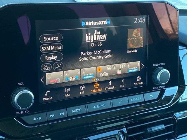 - Radio: AM/FM Audio System w/NissanConnect -inc: 6 speakers, Radio Data System (RDS), Apple CarPlay and Android Auto, 8" color display w/multi-touch control, SiriusXM satellite radio w/advanced audio features, 2 illuminated front USB connection ports (1 type A, 1 type C) for iPod interface and other compatible devices, Bluetooth® hands-free phone system and streaming audio, Speed-Sensitive Volume control (SSV), hands-free text messaging assistant and Siri Eyes-Free/Google Assistant voice recognition