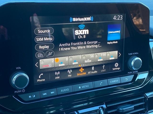 - Radio: AM/FM Audio System w/NissanConnect -inc: 6 speakers, Radio Data System (RDS), Apple CarPlay and Android Auto, 8" color display w/multi-touch control, SiriusXM satellite radio w/advanced audio features, 2 illuminated front USB connection ports (1 type A, 1 type C) for iPod interface and other compatible devices, Bluetooth® hands-free phone system and streaming audio, Speed-Sensitive Volume control (SSV), hands-free text messaging assistant and Siri Eyes-Free/Google Assistant voice recognition