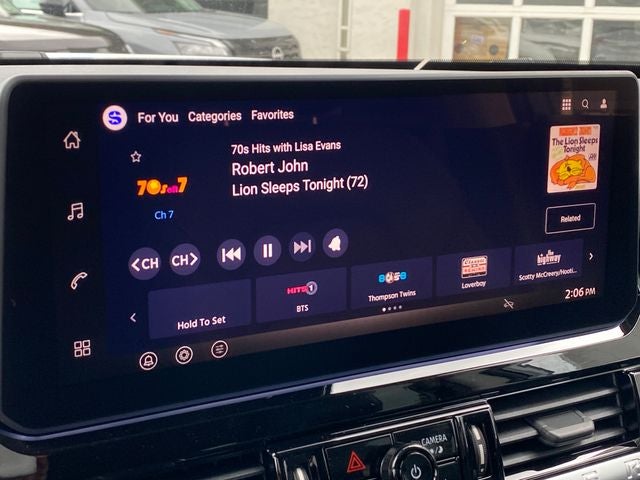 - Radio: AM/FM Audio System w/NissanConnect -inc: 6 speakers, 5G Wi-Fi hotspot, wireless Apple CarPlay and Android Auto, 12.3" multi-function information display, SiriusXM satellite radio, 2 front USB connection (1 type C charge and data ports), Bluetooth® hands-free phone system, streaming audio and messaging and hands-free text messaging assistant