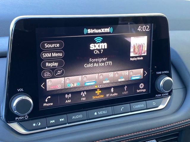 - Radio: AM/FM NissanConnect -inc: 6 speakers plus 2 tweeters, Apple CarPlay, Android Auto, 8" color touch screen display, Bluetooth®, 2 front USB type-C, Wi-Fi hotspot and NissanConnect Services powered by SiriusXM