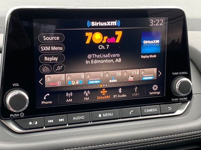 - Radio: AM/FM NissanConnect -inc: 6 speakers plus 2 tweeters, Apple CarPlay, Android Auto, 8" color touch screen display, Bluetooth®, 2 front USB type-C, Wi-Fi hotspot and NissanConnect Services powered by SiriusXM