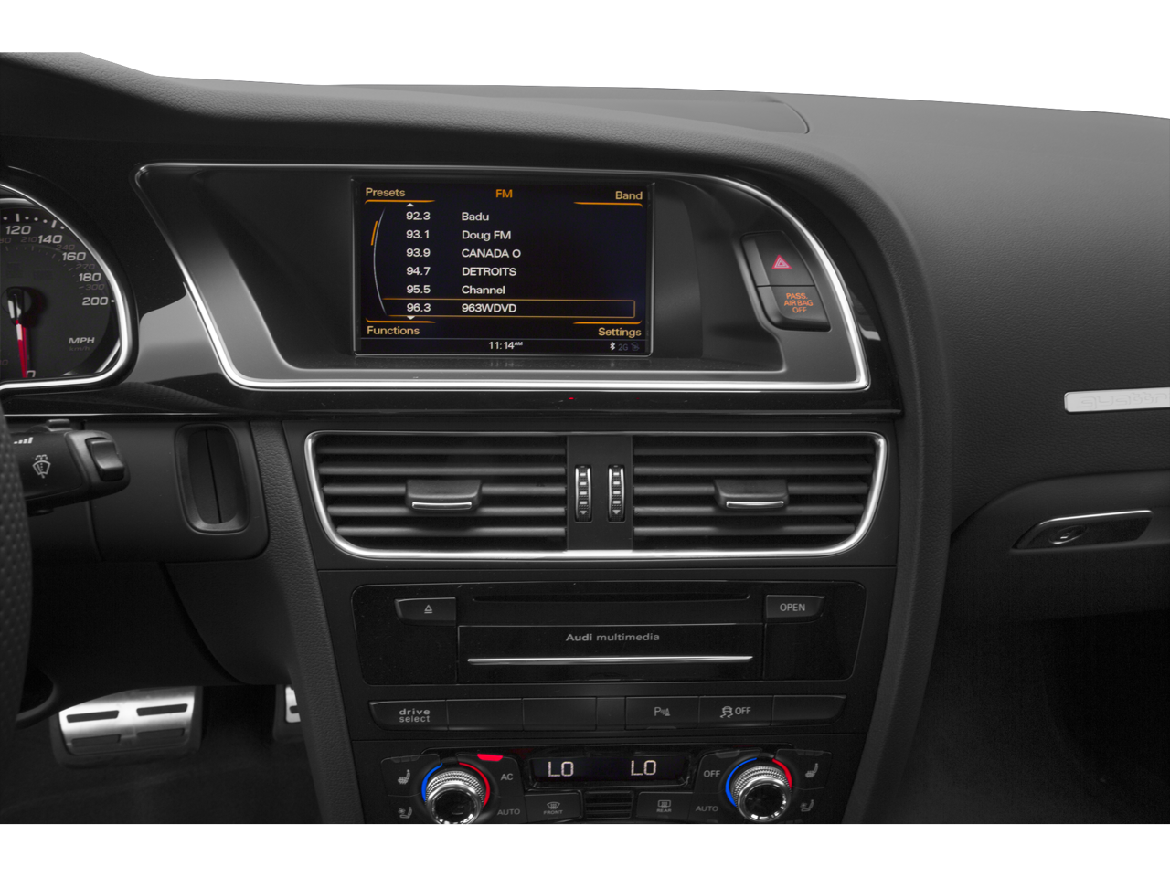- Radio: Audi Concert System w/1CD Player -inc: Bang & Olufsen sound system w/14 speakers and 505 watts includes Dolby Digital 5.1 and noice compensation, DVD capability w/Audi MMI Navigation plus, MP3 capable, AM/FM radio, auxiliary input jack, SD card slot w/32GB capacity for MP3 files, speed-dependent volume control, Audi MMI radio plus system for controlling infotainment/climate/car setup w/6.5" color screen, Audi music interface w/iPOD integration includes one cable for iPod connection, Bluetooth® wireless technology preparation for mobile phone, HD Radio technology and SiriusXM satellite radio (90-day trial subscription)
