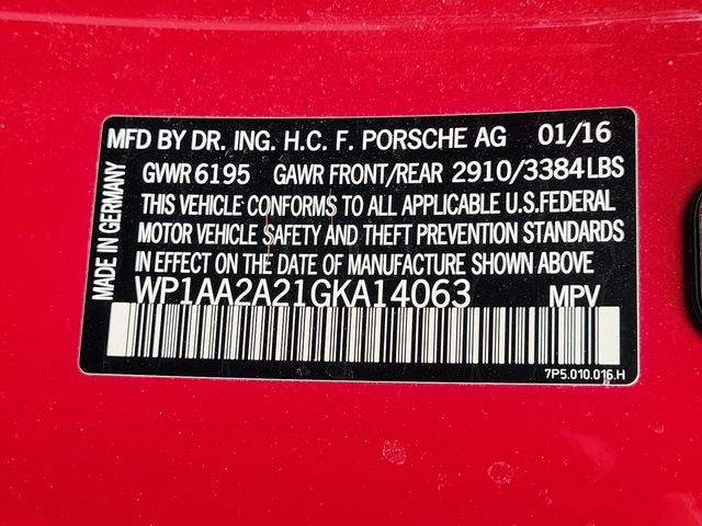 This 2016 Porsche Cayenne come equipped with, Black Leather, 10 Speakers, 3.27 Axle Ratio, 4-Wheel Disc Brakes, 8-Way Power Front Seats, ABS brakes, Air Conditioning, Alloy wheels, AM/FM radio, Automatic temperature control, Brake assist, Bumpers: body-color, CD player, Delay-off headlights, Driver door bin, Driver vanity mirror, Dual front impact airbags, Dual front side impact airbags, DVD-Audio, Electronic Stability Control, Four wheel independent suspension, Front anti-roll bar, Front Bucket Seats, Front Center Armrest, Front dual zone A/C, Front fog lights, Front reading lights, Fully automatic headlights, Garage door transmitter: HomeLink, Heated door mirrors, High intensity discharge headlights: Bi-Xenon, Illuminated entry, Knee airbag, Leather Shift Knob, Low tire pressure warning, Navigation System, Occupant sensing airbag, Outside temperature display, Overhead airbag, Overhead console, Panic alarm, Partial Leather Seat Trim, Passenger door bin, Passenger vanity mirror, Power door mirrors, Power driver seat, Power Liftgate, Power passenger seat, Power steering, Power windows, Radio: AM/FM/CD/DVD w/PCM & Navigation, Rain sensing wipers, Rear anti-roll bar, Rear fog lights, Rear reading lights, Rear seat center armrest, Rear side impact airbag, Rear window defroster, Rear window wiper, Remote keyless entry, Security system, Speed control, Split folding rear seat, Spoiler, Sport steering wheel, Steering wheel mounted audio controls, Tachometer, Telescoping steering wheel, Tilt steering wheel, Traction control, Trip computer, Variably intermittent wipers, Wheels: 8J x 18 Cayenne, Black Leather.