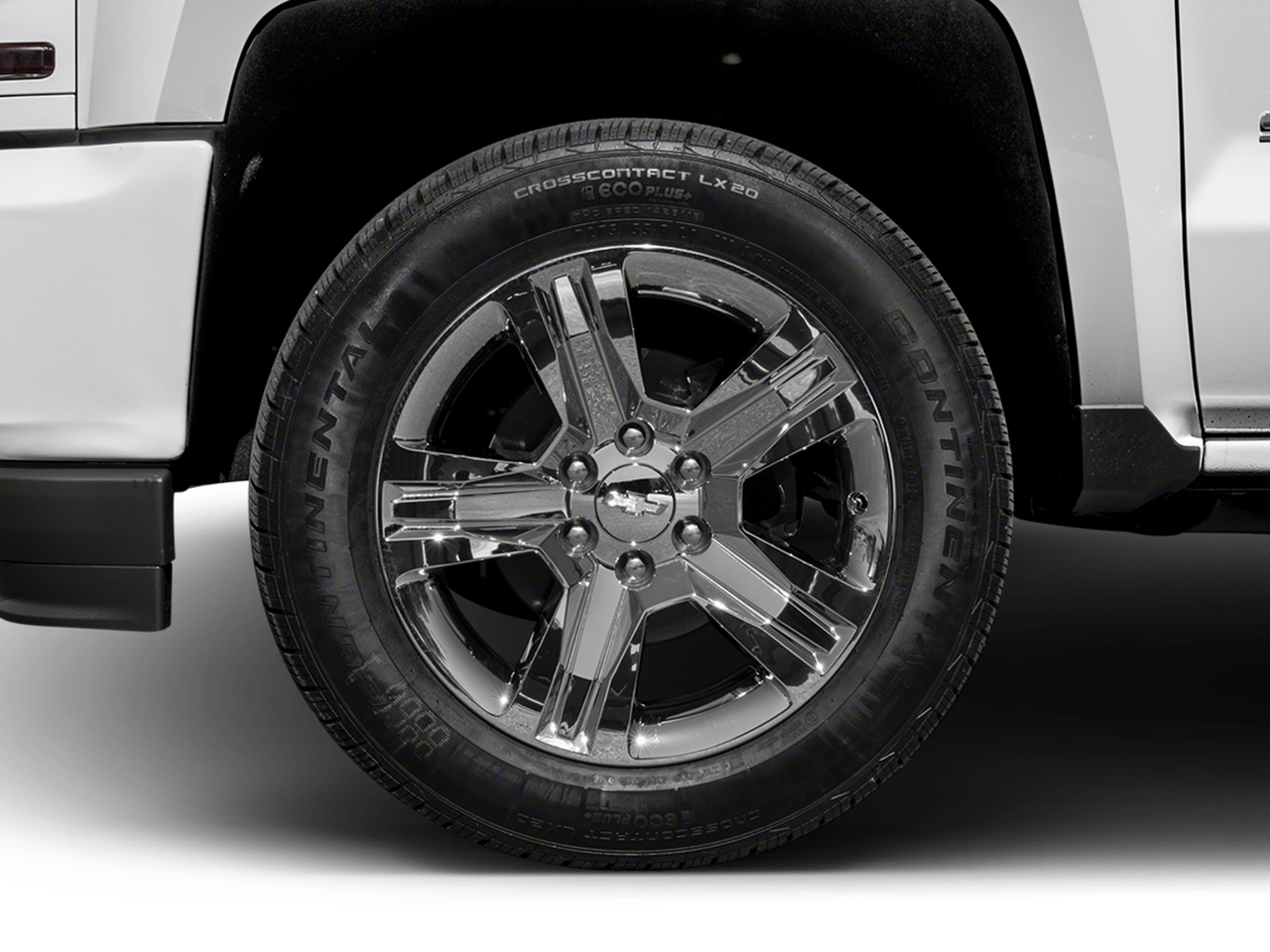 - Wheels, 20" x 9" (50.8 cm x 22.9 cm) chrome clad aluminum
