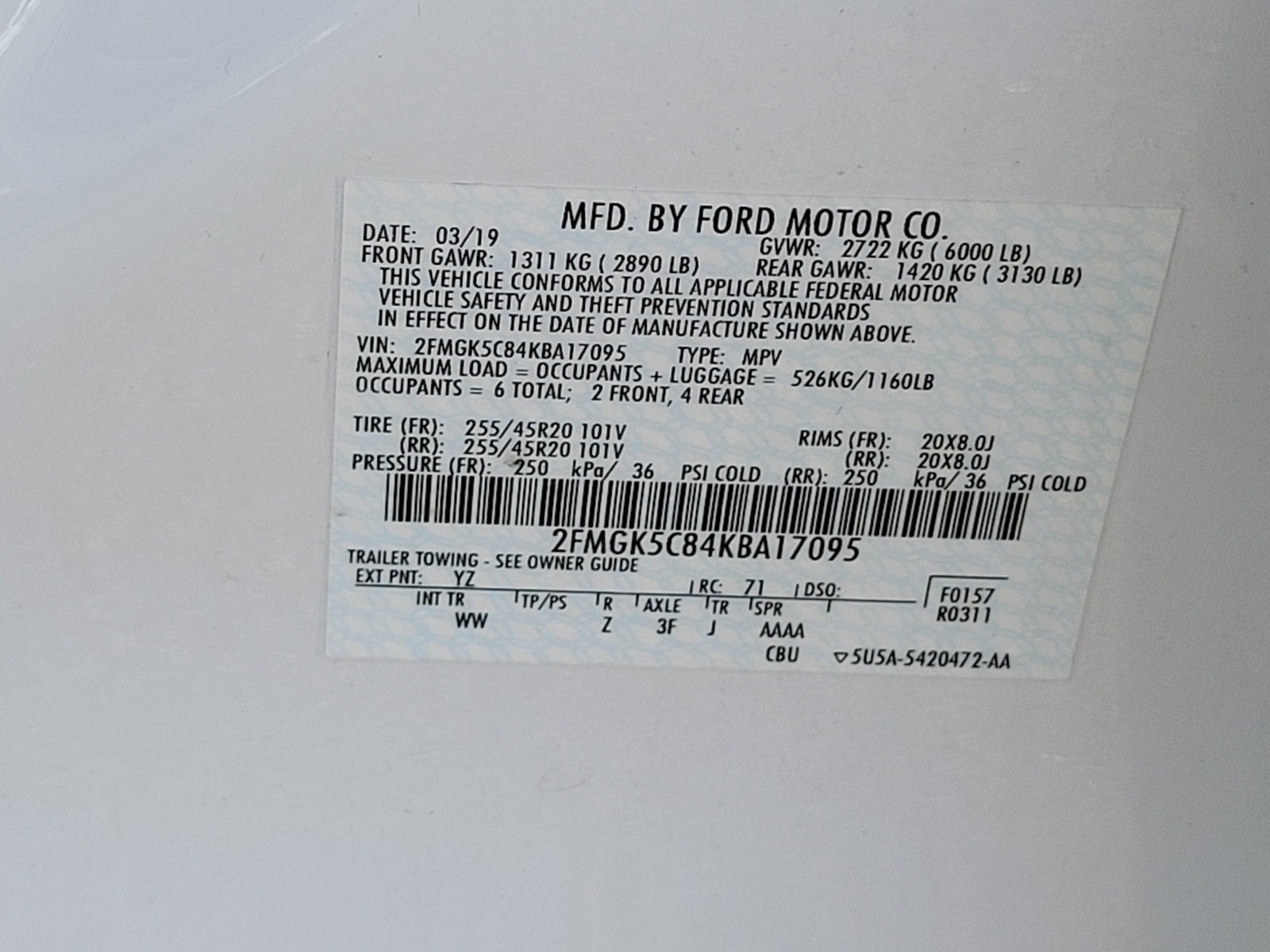 - Fuel Economy Est-Combined (MPG): 19