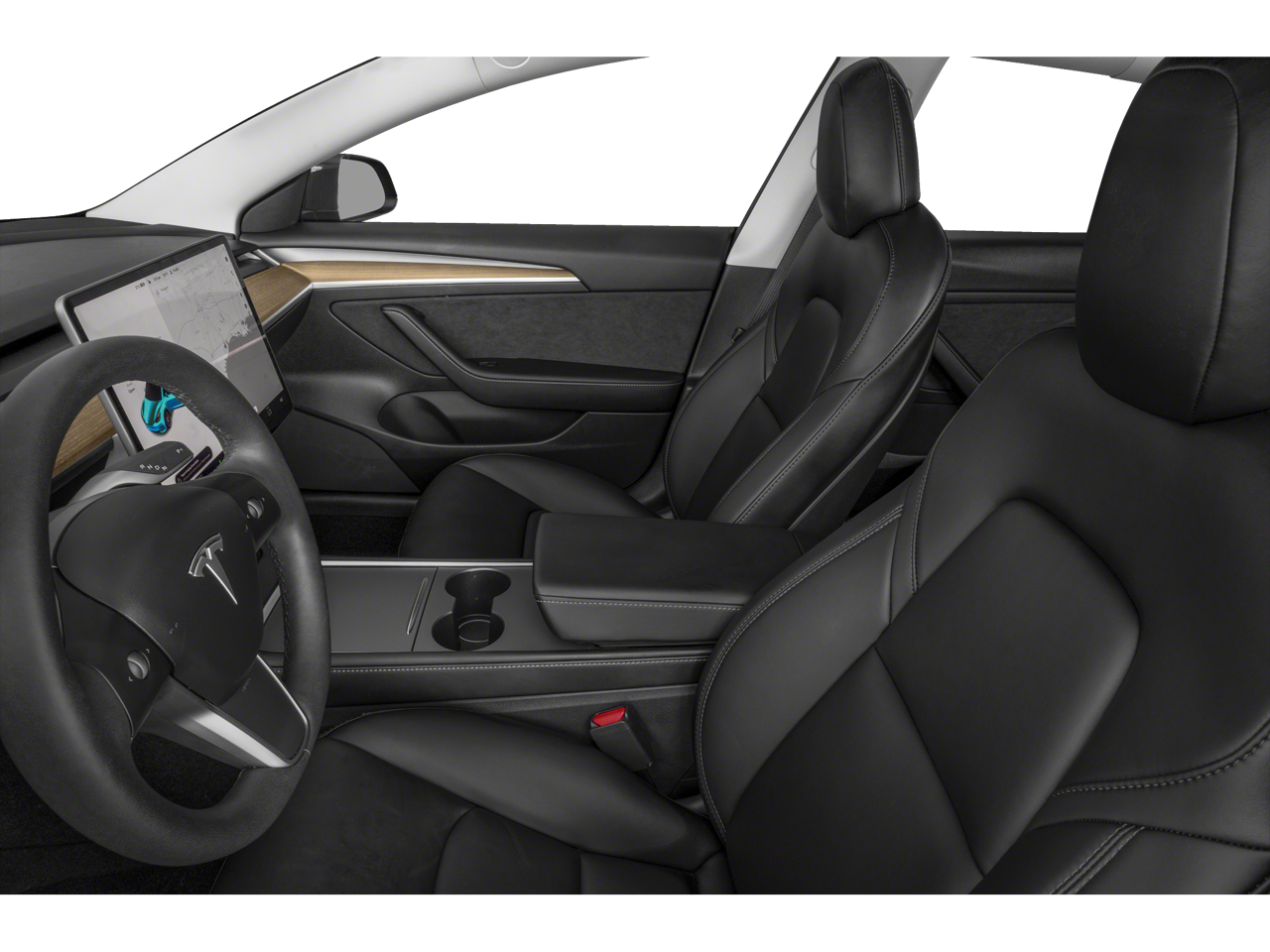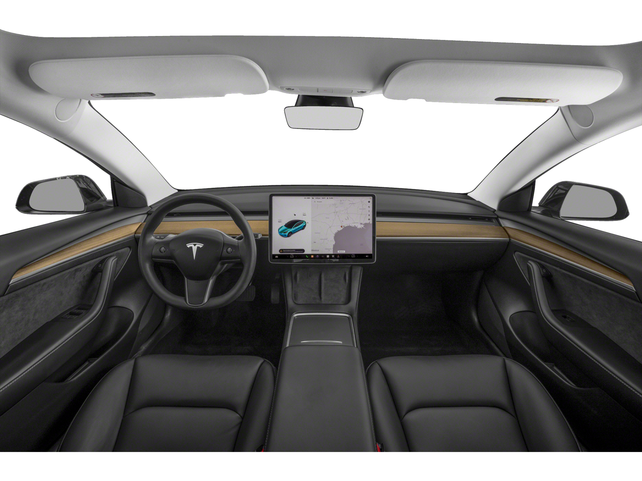 Large center touchscreen controlling navigation, media, climate, and vehicle settings